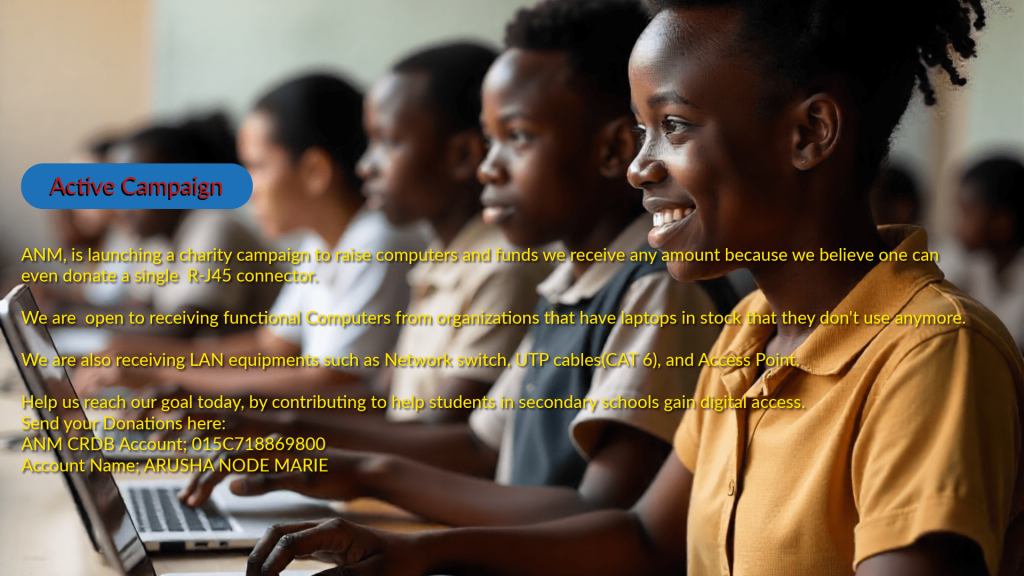 ANM collaborating its partners in setting up a computer lab. The computing system is implemented and all users access data from the main server where all students materials are kept and accessed by each student using the user name and passwords that are provided to them by their Admins.